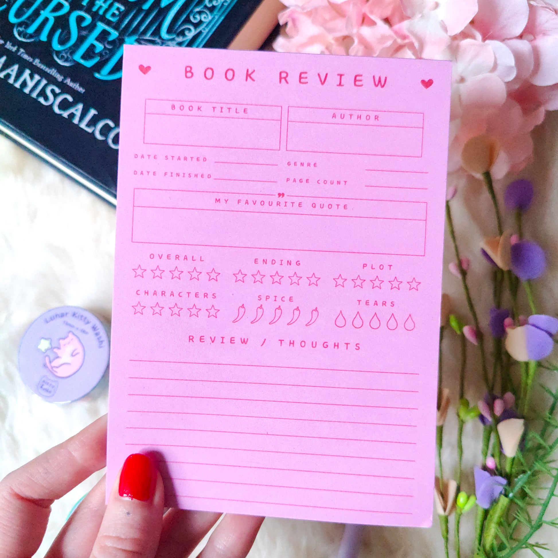 Cute Pink A6 Book Review Notepad – 25 Pages | Aesthetic Tearaway Tracker for Romance & Fantasy Readers