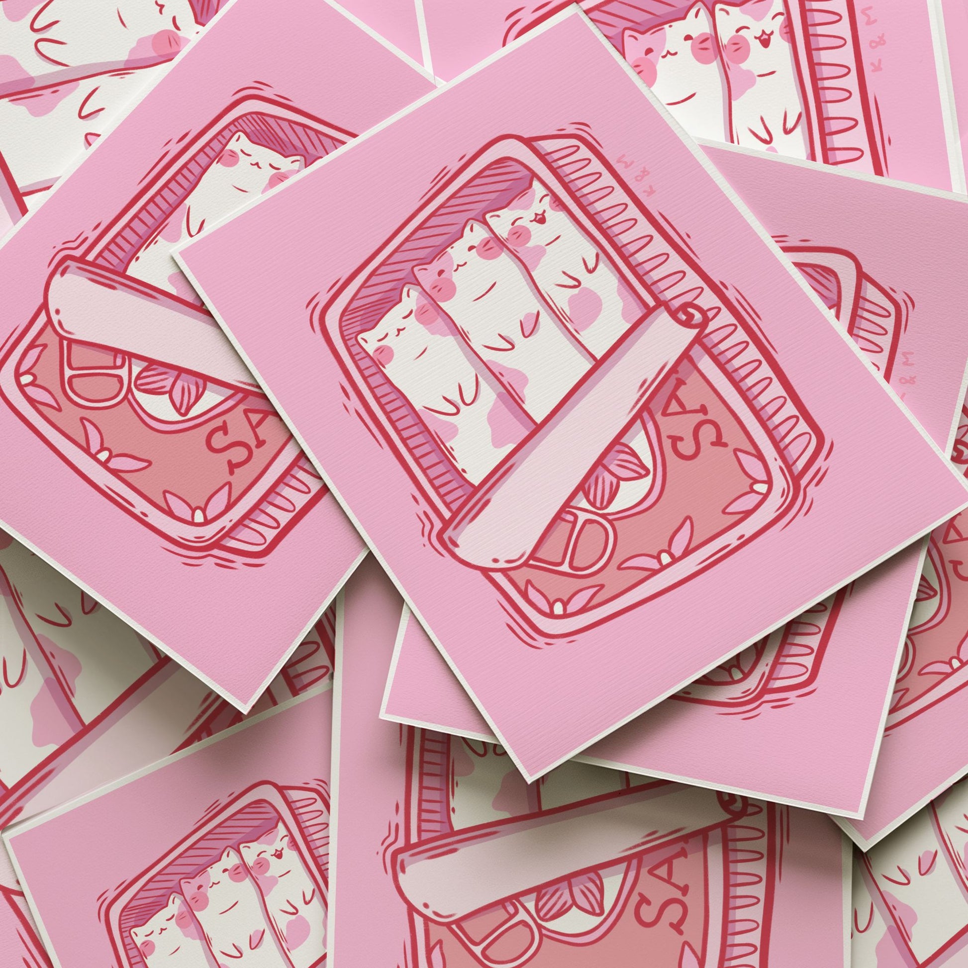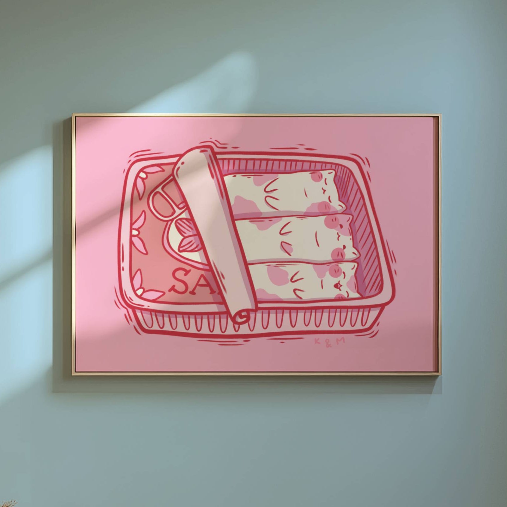 Add a splash of charm to your space with this adorable Sardine Kitty art print — a purr-fect blend of cosy vibes and playful pink aesthetics! Inspired by a love for quirky characters and feline mischief, this original illustration features three sweet kitties snuggled up in a sardine tin, ready to steal hearts.